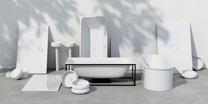 Badelemente aus natürlichem glasierten Titan-Stahl von Bette.